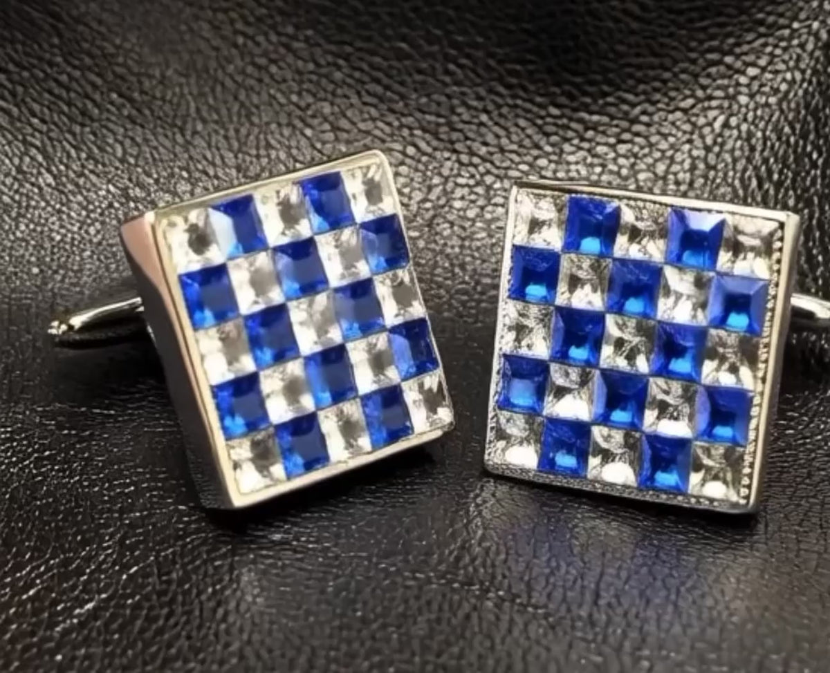 3crystals Silver Square Cufflinks with blue and black-Cufflinks-marzthomson-Cufflinks.com.sg