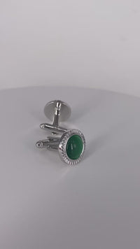 简单而不失优雅。这些袖扣采用完美圆形绿色宝石,抛光至完美绿色 宝石在白色双袖衬衫的衬托下完美地散发出色彩。
