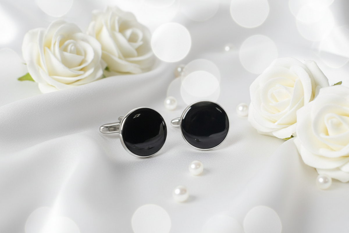 marzthomson The Noir Series — Men’s Premium Black Enamel & Silver Cufflink Collection