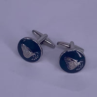 Botanic Series - Round Silver Butterfly Cufflinks in Dark Blue