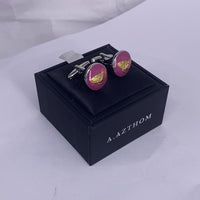 This design of cufflinks comes in four different colours: dark blue, red, green and purple, plated with either rhodium or gold.